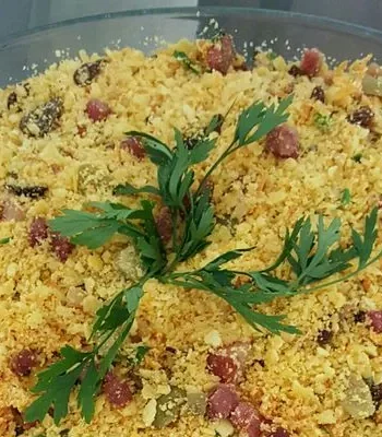 Acrescente a manteiga e misture com as pontas dos dedos até formar uma farofa.